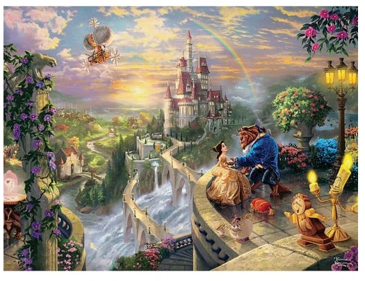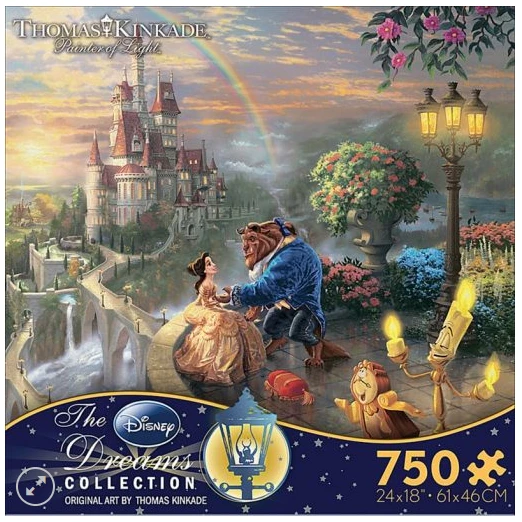 Celebrated artist Thomas Kinkade said of this work, ”Here truly is unconditional love in its purest form. I hope you sense that love every time you look upon ”Beauty and the Beast Falling in Love.” Our 750-piece puzzle is based on this work from his celebrated Disney Dreams Collection.