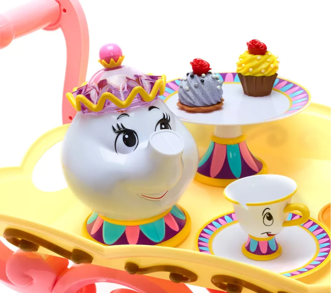 - Includes: 2 plates, 2 cakes, 1 cup, cake stand, cart, Chip, Mrs. Potts and Lumiere