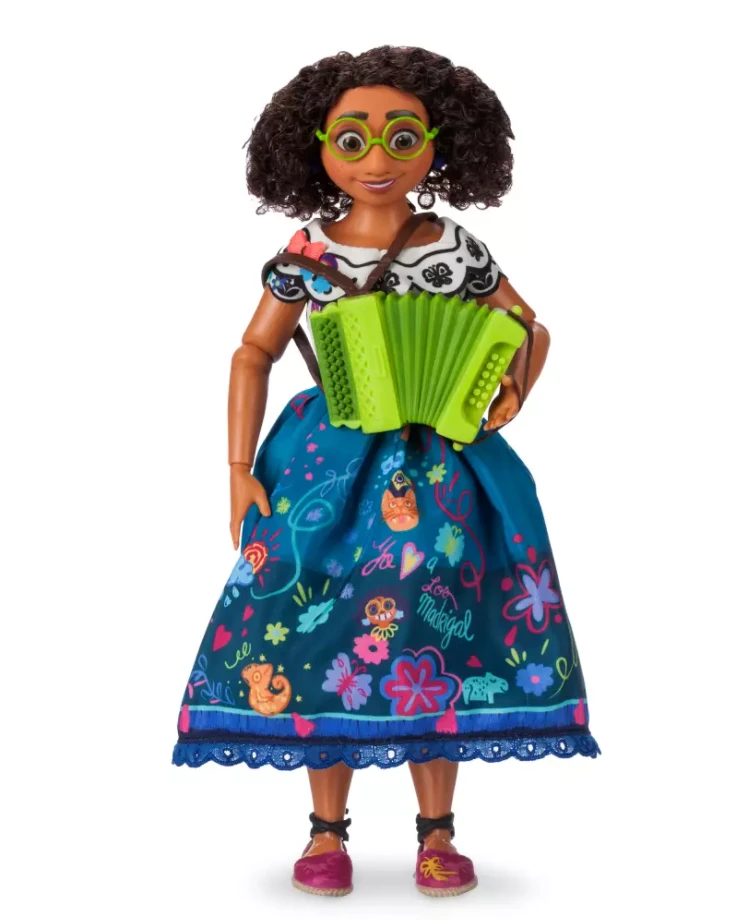 The lovable, funny young Mirabel is part of the Madrigal family at the heart of Disney’s Encanto. This detailed doll includes her movie-inspired outfit and accordion. Press the button to hear her sing The Family Madrigal, one of celebrated composer Lin-Manuel Miranda’s songs from the film.