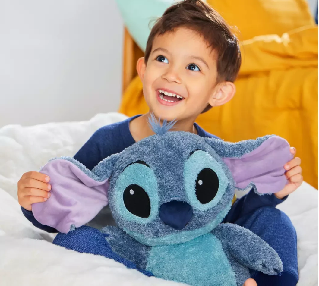 An out-of-this-world alien is here to offer cosy comfort. This Stitch medium soft toy with fluffy tuft of hair and floppy ears provides endless relaxation for you at home and beyond with a removable, weighted pouch!
