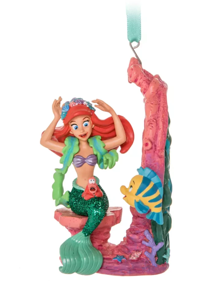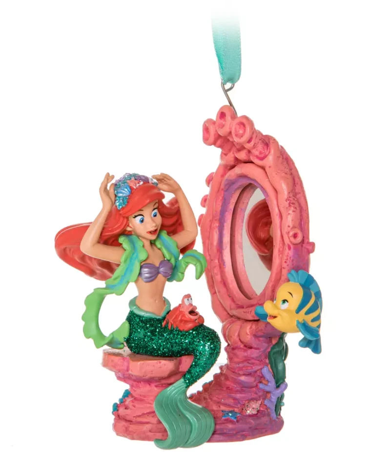 She’s got whozits and whatzits galore but wants even more. For this Sketchook Ornament, Ariel imagines life in the human world while posing in front of her vanity mirror. Sebastian and Flounder admire her new look.
