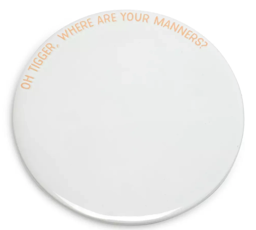 - ‘Oh Tigger, where are your manners?’ wording on plate