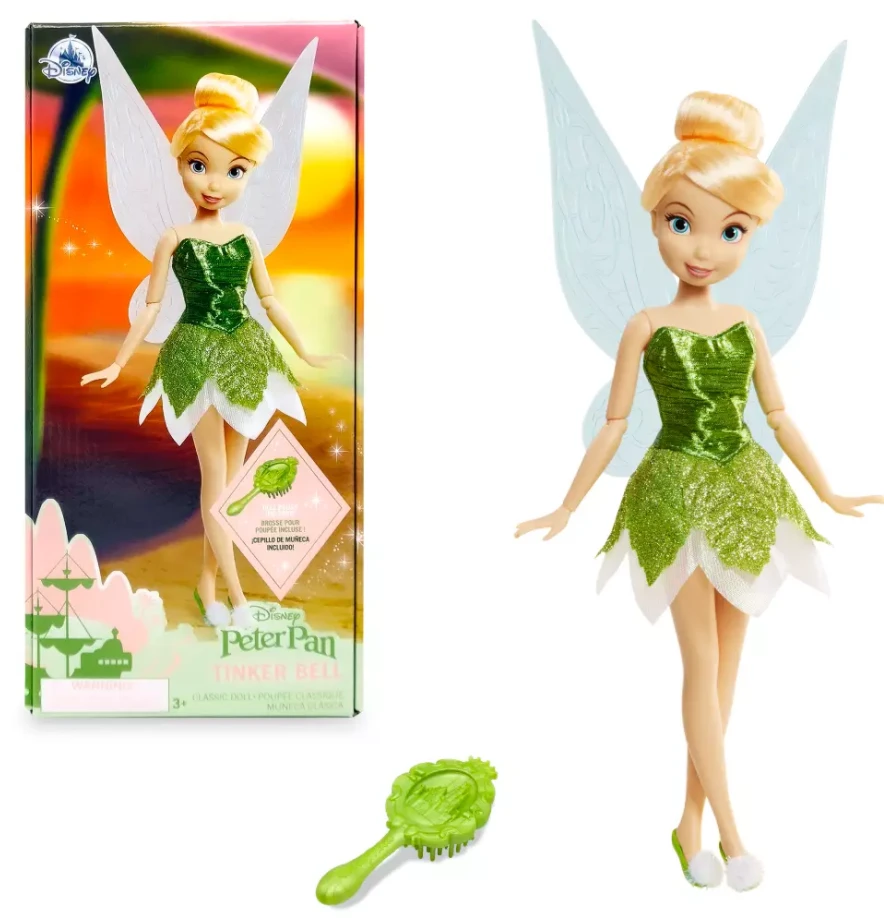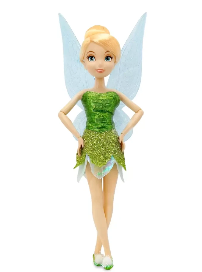 Our Tinker Bell Classic Doll brings Pixie Hollow enchantment to playtimes! In her signature green dress and shoes with fluffy pom-poms, the feisty fairy looks ready to head towards the second star to the right.